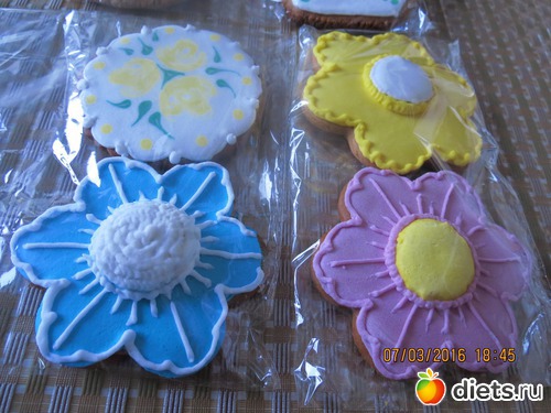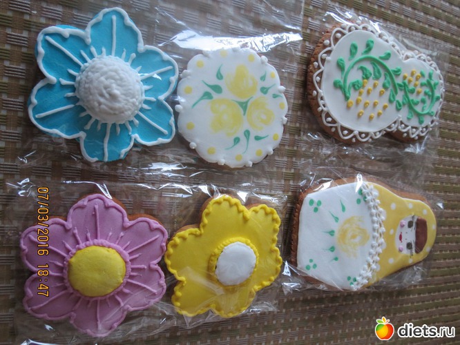 Сноха подарила мне вместе с яйцами-куличём медовые расписные пряники личного изготовления. Это просто произведения искусства и жалко такое есть. Я сегодня не фоткала (если не съем-завтра) там пасхальные мотивы, верба... а вот на 8 марта она мне такие дарила: