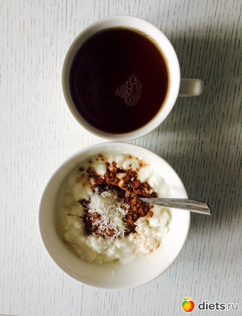 Ланч: творог с кефиром, какао и кокосовой стружкой, чай