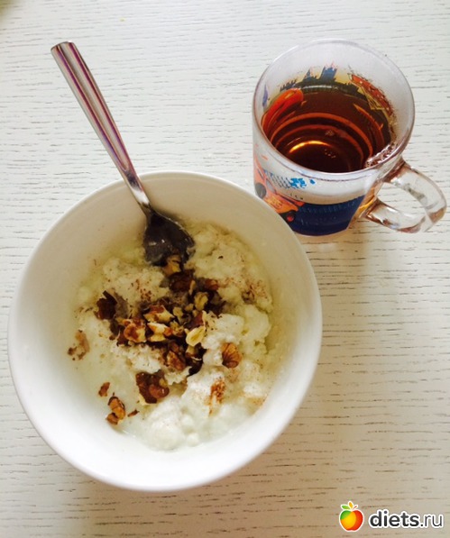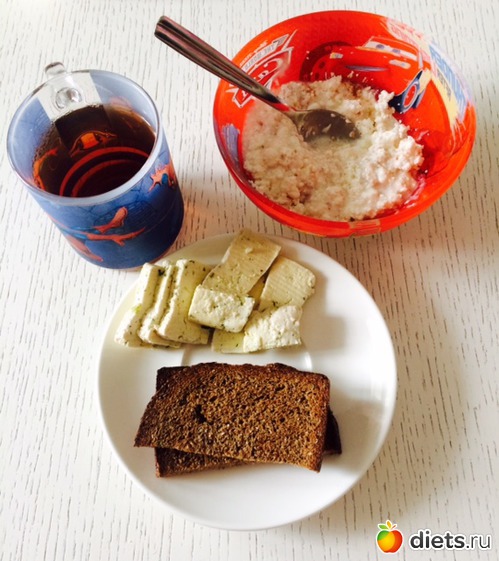 Обед: творог с корицей, тофу, цельнозерновой хлебец, чай