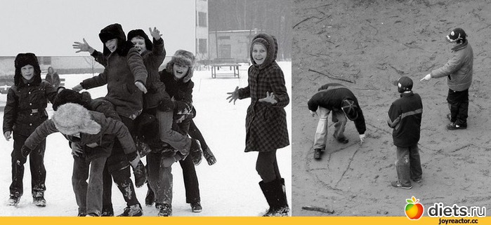 "секретики" во дворе, казаки-разбойники, классики, гонки на велосипедах, замки из песка, кислые, но такие вкусные первые яблоки антоновки, коллекции календариков, детские спектакли на крыльце подъезда (кстати жили возле Риги), на просмотр которых раздавали билеты заранее, "резиночки", субботники всем домом...