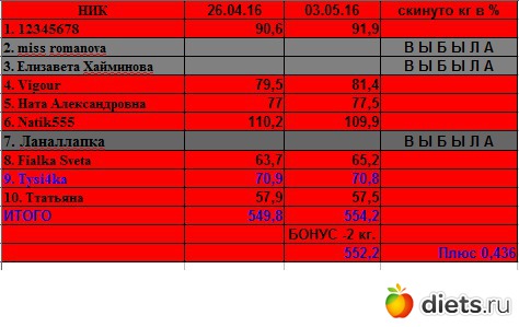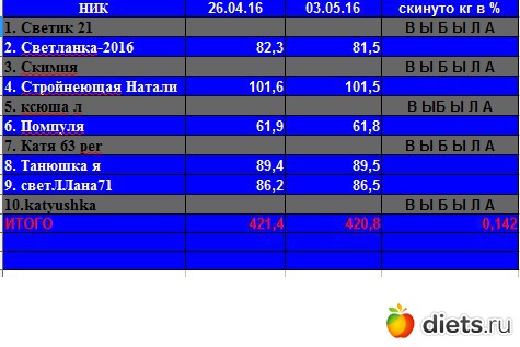 Diets.ru Итоги 8 взвешивания от 03.05.16