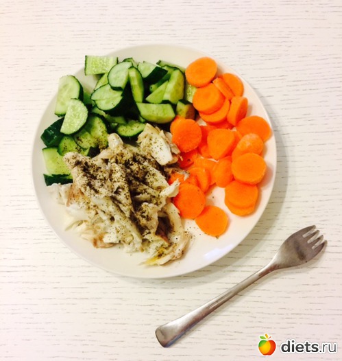 Ужин: запеченная дорадо, огурец, морковь (кошечки-божечки, это было восхитительно...