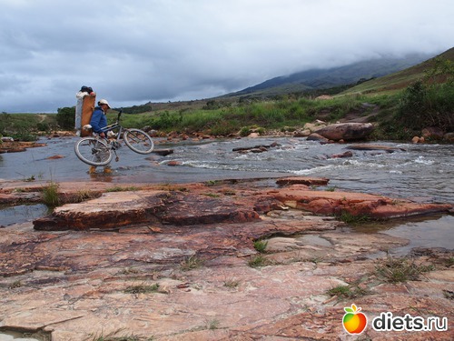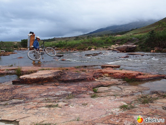 Портер с великом переправляется через rio Tok.