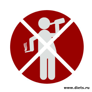 Считается, что курение помогает сбросить вес. Это неверно. На самом деле курящие худеют потому, что заменяют сигаретой привычку что-нибудь пожевать. Сигарета — не метод похудеть! Не будем подробно рассказывать о вреде курения, напомним только, что курение несовместимо с полноценными занятиями физкультурой и спортом. Следовательно, курильщики не способны эффективно использовать лучший способ борьбы с лишним весом.
