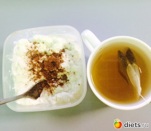 Полдник: творог с какао, чай