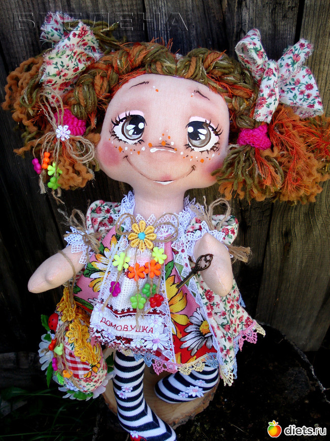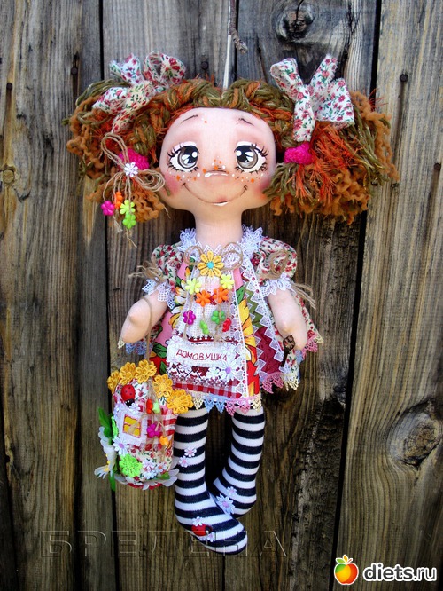 Кукла Домовушка, не занимая много места, станет не только Вашей помощницей в домашних хлопотах и заботах, но и уютным украшением Вашего дома. Рост 55 см.