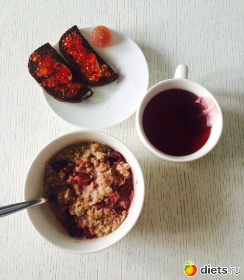 Завтрак: овсяная каша с вишней, чай, бутерброды с икрой, мармеладка (гадость гадкая оказалась, вкусвилл в этом случае разочаровал, совсем не мармелад, а какое-то застывшее яблочное пюре с кучей сахара... )