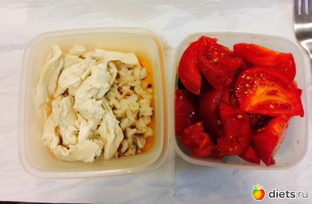 Обед: рис с куриной грудкой, огурец и помидор ( огурец спрятался просто )... Читать полностью