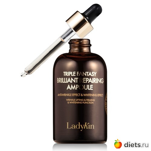 "Очень эффективная сыворотка с огромным потенциалом восстановления кожи, с каждым применением закладывающая незыблемый фундамент для ее здоровья, молодости и красоты, учитывает все потребности клеток и полностью их удовлетворяет. Богатейший на активы состав Ladykin Triple Fantasy Brilliant Repairing Ampoule способен творить чудеса, делая кожу свободной от изъянов и готовой достойно отбивать все атаки времени и агрессивной среды."