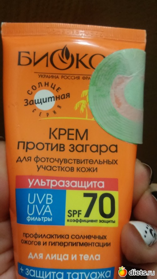 Защита лица от солнечных лучей. С защитой 50 пользуюсь в городе, с защитой 70 -на пляже. В этом году купила Биокон и очень довольна результатом.