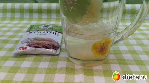 Для начала заливаю столовую ложку желатина водой примерно взяла 10 столовых ложек кипяченой холодной воды, после того как желатин набухнет нагреваю его в микроволновке, но не КИПЯТИТЬ