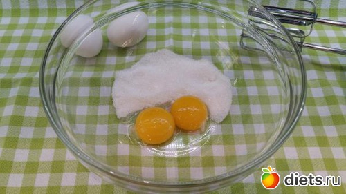 соединяю 2 желтка(без белков) и 3 столовых ложки сахара