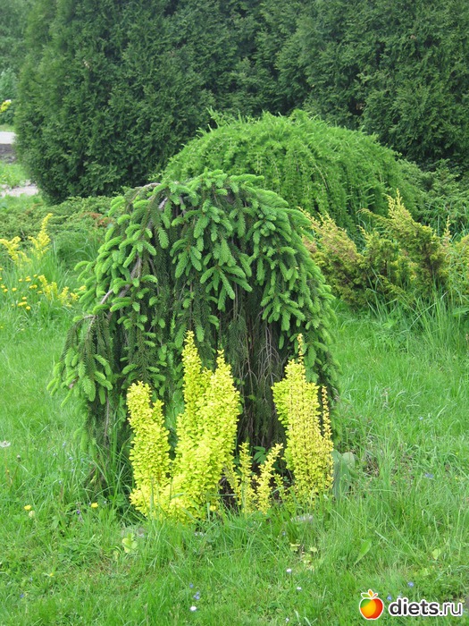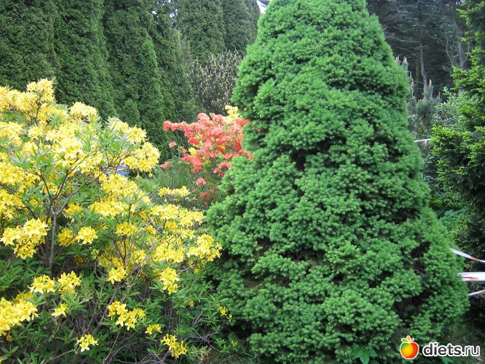 Мы даже и не пытались запомнить названия - бесполезно. Но вот это плакучий кипарис.