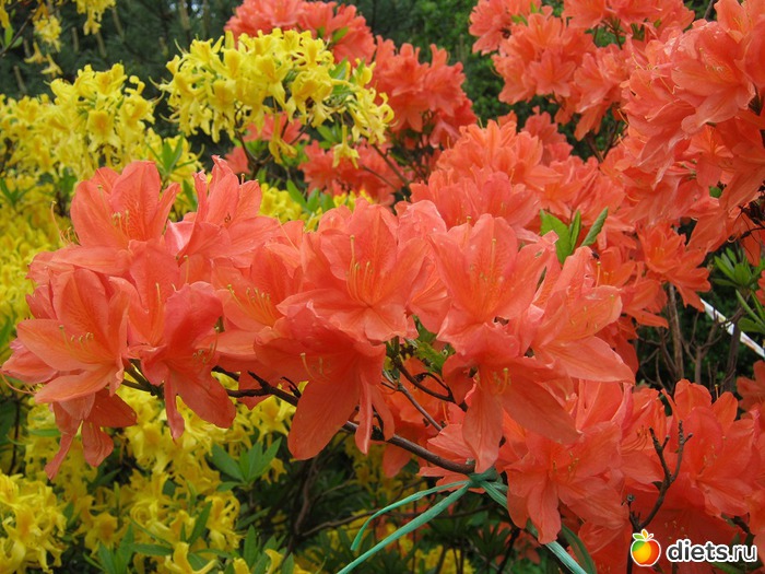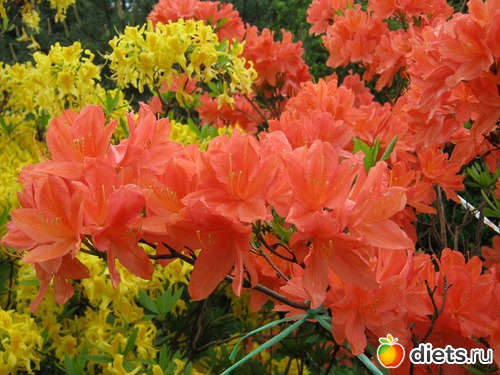 Второй раз у рододендронов. Это их разновидность - азалии. Самих рододендронов тоже очень много, разных цветов, но эти!!!