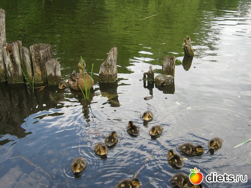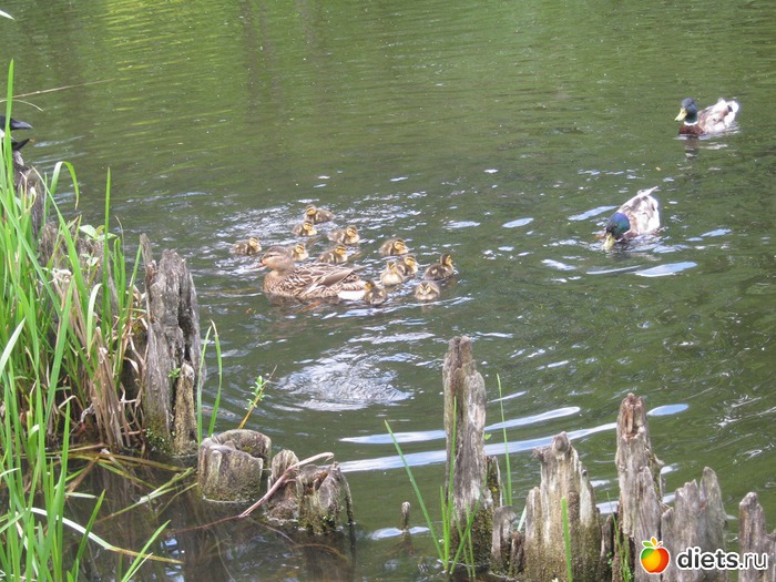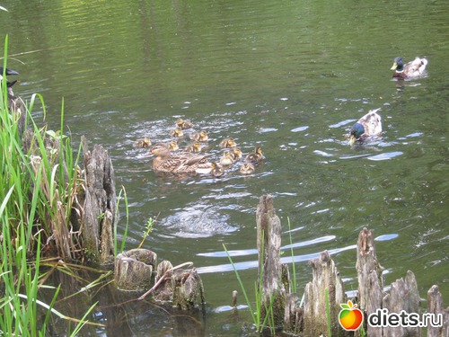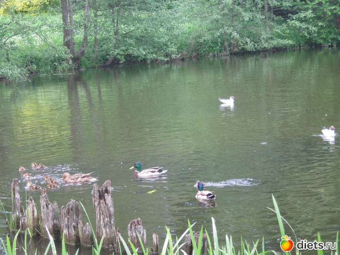 Уточки и рыбки нас тоже надолго задержали у пруда))