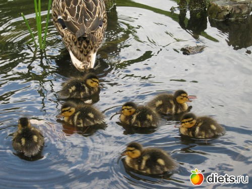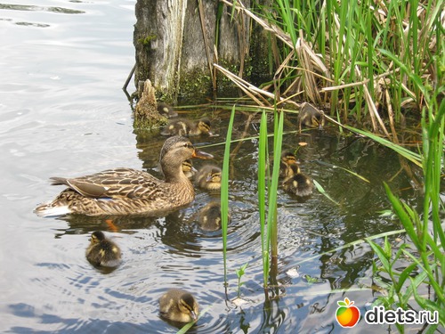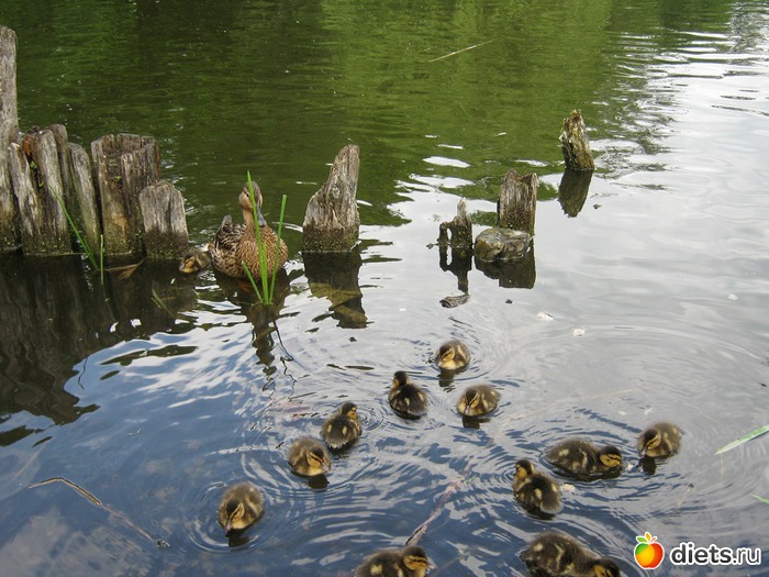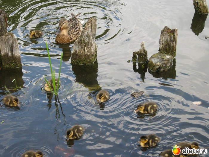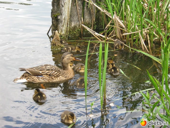 Вверху утка - мамочка голову наклонила к утяткам, видите?