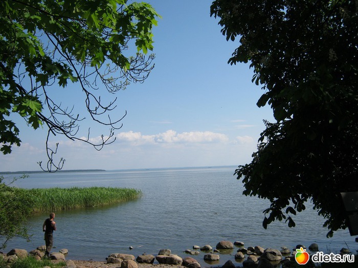 С другой стороны, за деревьями, молодой человек бросал камешки по воде.
