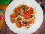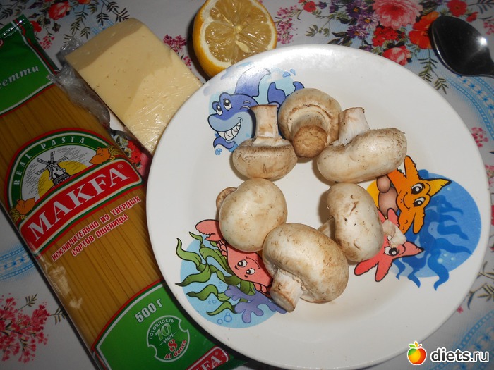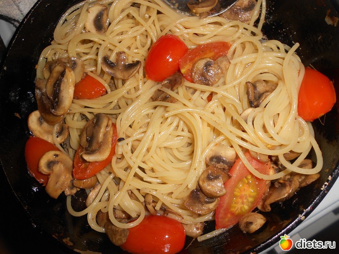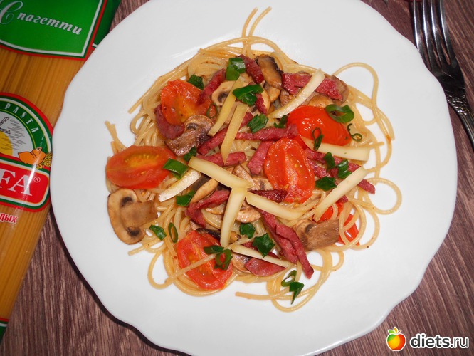 Вкусное, одновременно диетическое блюдо с пастой "Макфа". Блюдо для поддержания веса. Категория:на ужин. На 2 порции. В одной порции: 255 ккал. Нам понадобится: спагетти "Макфа"-160г помидоры черри-150г шампиьоны-180г ветчина-2 ломтика сок 1/4 лимона соус табаско-пара капель оливковое масло-3 ст.л. соль-по вкусу... Читать полностью |