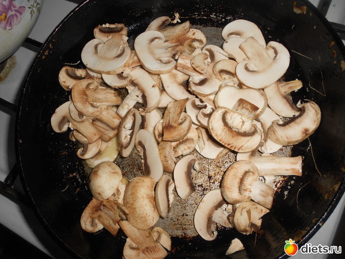 Паста с шампиньонами и ветчиной
