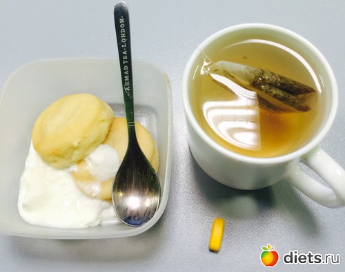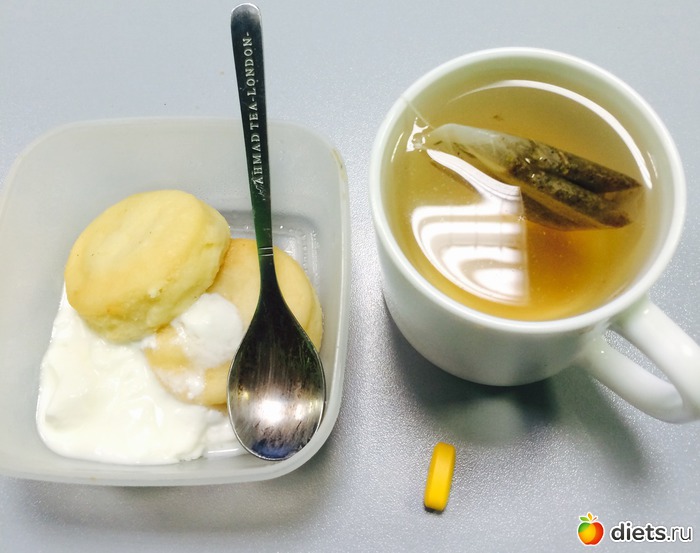 Ланч: сырники с йогуртом, витаминов, чай