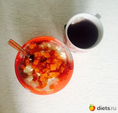 Полдник: творог с йогуртом и морковной пастилой, чай