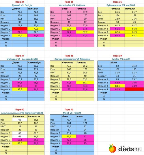 пары №3, 4, 5, 6, 8, 10, 12, 19, 20, 21, 22, 26, 27, 30, 32, 35, 38,41
