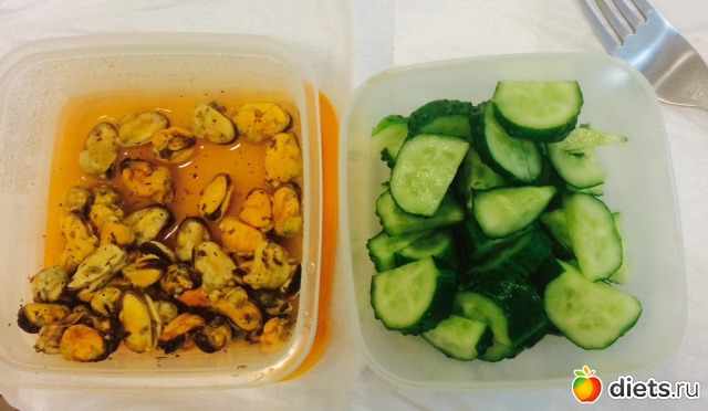 Обед: мидии, огурцы