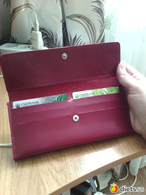 А я тоже хочу показать свой кошелек,тоже красный,только лаковый! Хороший очень у тебя кошелек! Очень люблю кошельки,у меняих 5шт!А этот на 2 раза раскладывается,как 2 кошелька.