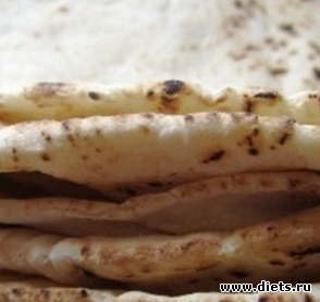 Когда первая лепешка будет готова, кладем на очень горячую сковороду и обжариваем с каждой стороны до появления темных пятнышек. Тут же снимаем и заворачиваем во влажное полотенце.