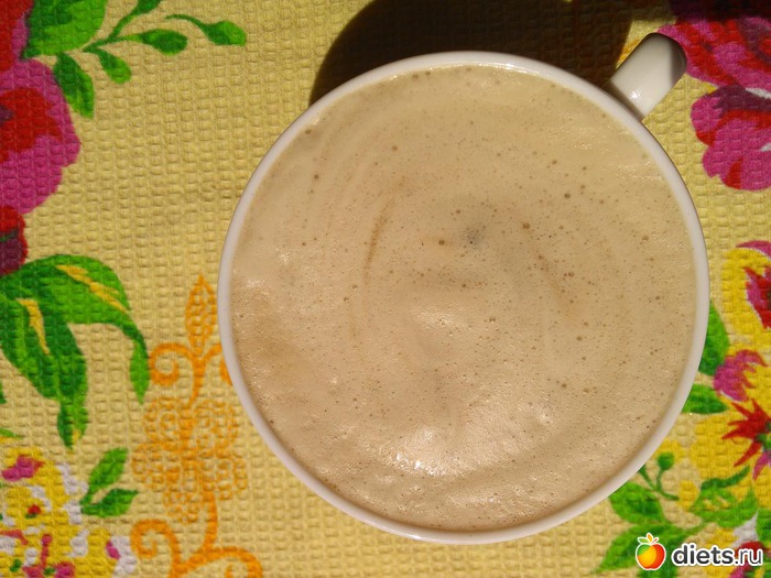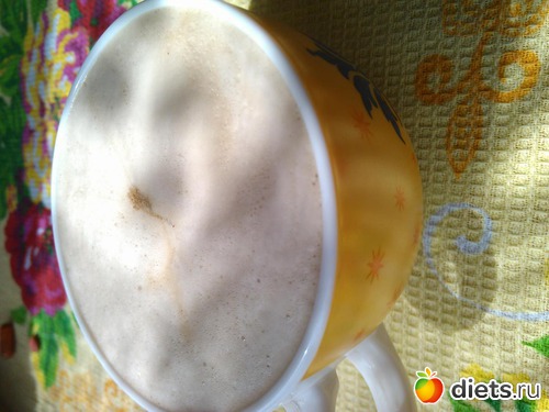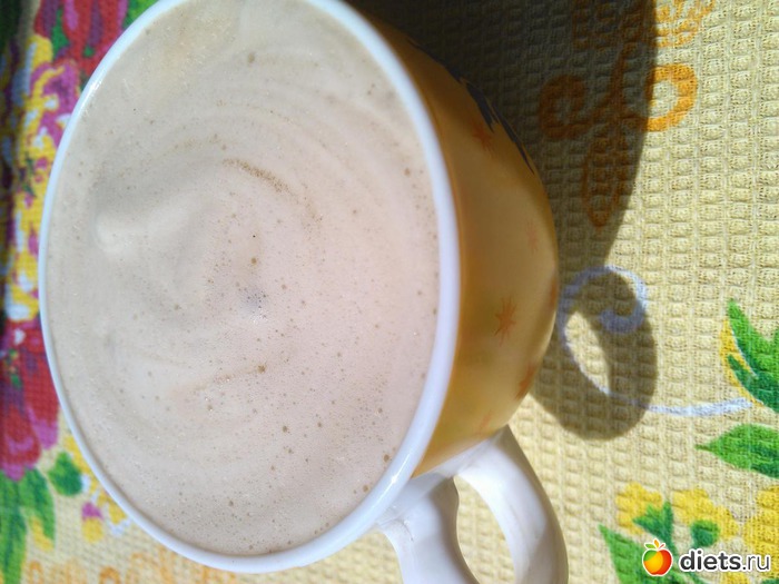 А вообще я взбивала только для фото, для пафоса. Ну и если еще кого угощать буду, чтоб не менее чем на 3 человека взбивать. А так ради одной чашки - не заморачиваюсь, плавает да плавает. Аромат кокоса немного есть, и то уже хорошо.