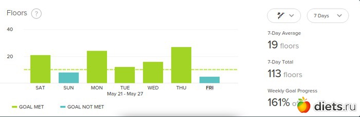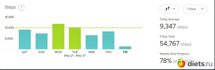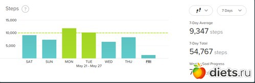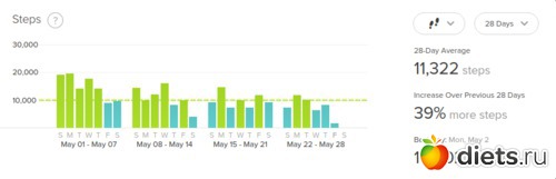 Плюс делаю я свои 10000 шагов (в среднем). Просто в среду браслет разрядился еще в обед. А сегодня я еще не доходила до уровня. Вот в разрезе 28 дней - нагляднее результат.