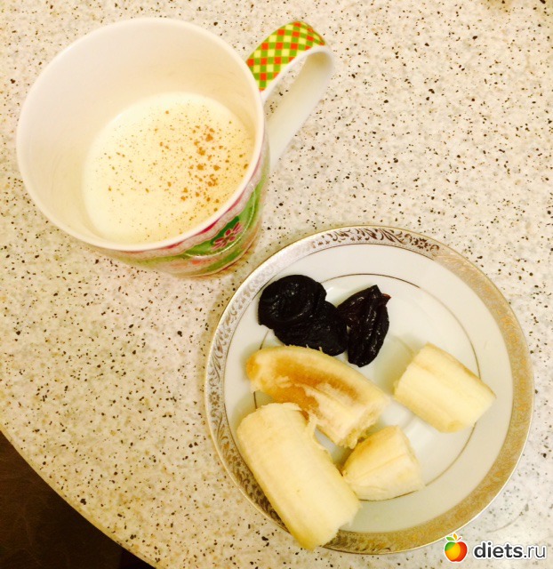 Ужин: стакан йогурта с корицей, банан, чернослив