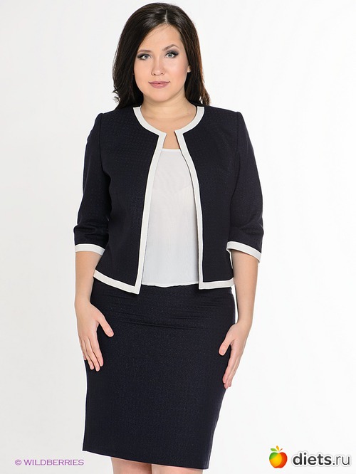 А под укороченный жакет, мне кажется, можно недлинную (до середины колена) юбку-клеш. Они талию подчеркивают, а животик, попу-бедра скрывают. И каблучок устойчивый, элегантный.