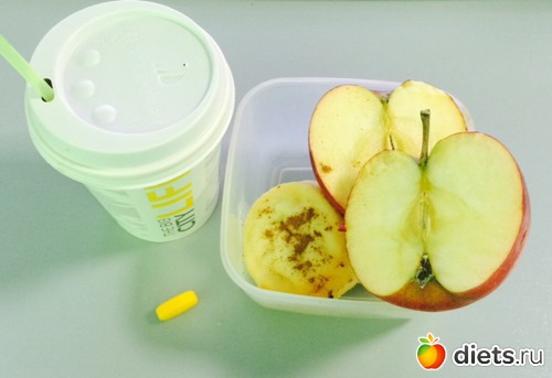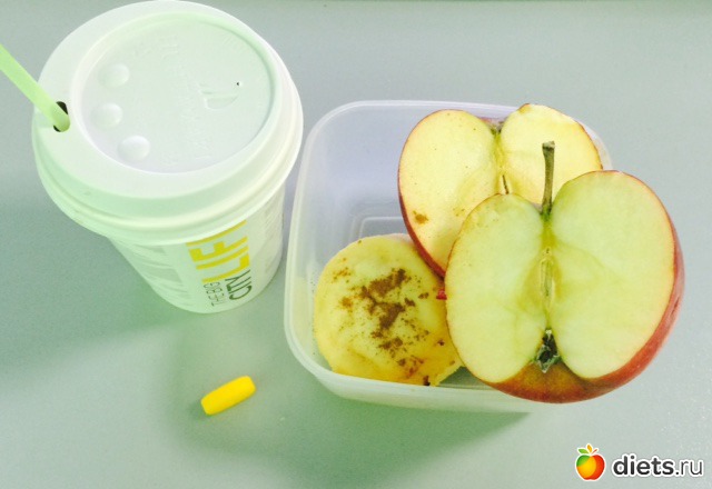 Ланч: яблоко, 2 сырника, кофе, витаминка