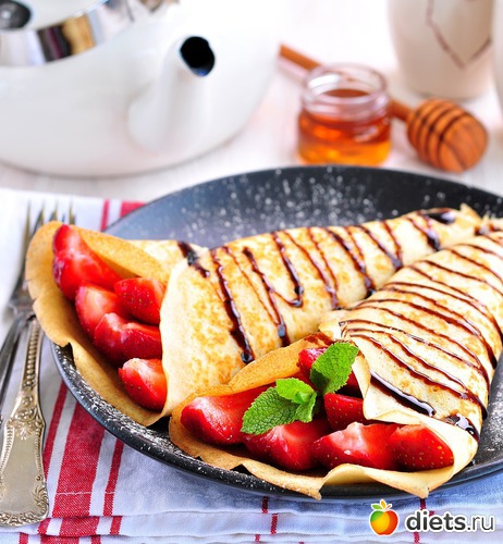 Когда желаемый вес достигнут, в воскресный выходной можно побаловать себя вкуснейшими блинчиками с клубникой и бальзамическим кремом.