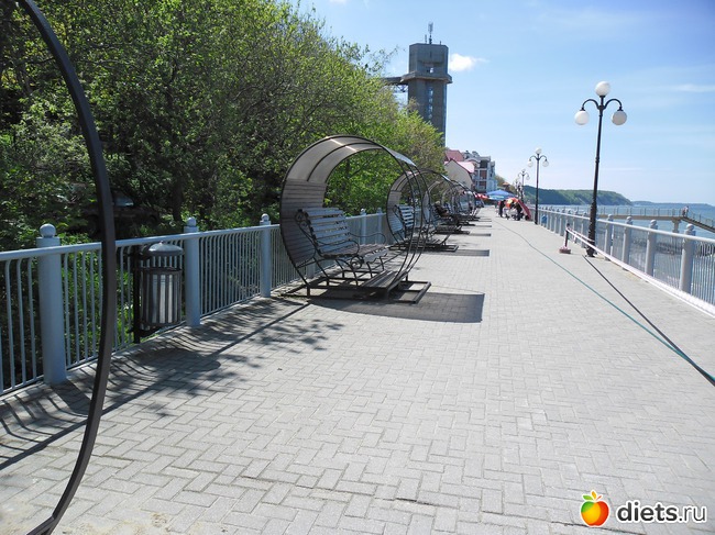 Спасибо. Как приятно послушать звуки моря, полюбоваться видами. Скамеечки такие удобные, наверно, с козырьком.