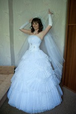 Не так давно когда я пришла к Андрею, я предложила ему интересную вещь. Побыть его невестой! Попросила, чтобы он разрешил мне одеть свадебное платье его жены Анны. Сказала что хочу поиграть с ним в жениха и невесту и чтобы все было почти по-настоящему. Я попросила показать платье. Он достал его, я рассмотрела свадебное платье, покрутила, повертела и решила одеть. Для меня свадебное платье было давней мечтой, и Андрей очень помог что исполнил мою мечту. Я сняла с себя бирюзовое короткое платье, в котором пришла, и стала перед зеркалом надевать через голову свадебное платье. Какое же я удовольствие испытывала. Андрей мне зашнуровал корсет у платья, подал фату и перчатки, которые я сразу же одела. Я стою, осматриваю себя и думаю. Вот наконец я невеста