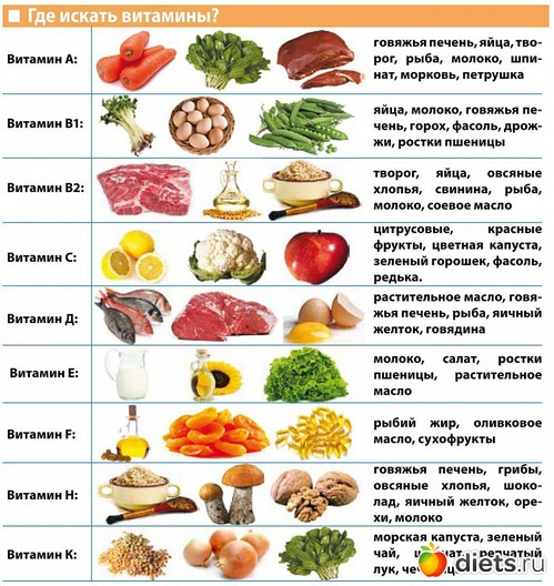Это лишь маленький перечень тех многочисленных витаминов какие стоит пить при похудении. Все витамины содержатся в самых, что ни на есть, полезных продуктах – нежирном мясе и рыбе, яйцах, крупах, бобовых, орехах и молочных продуктах. Но надо не забывать их есть каждый день, а не изредка.