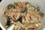На сутки убрать в холодильник, периодически перетряхивать, чтобы рыбка промариновалась равномерно. Так же рыбку можно плотно сложить в банку и закрыть крышкой. Через сутки наша вкуснейшая скумбрия готова.