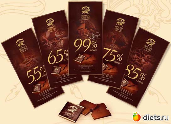 Наиболее полезным для человеческого организма является шоколад темный, т. е. с высоким содержанием какао-порошка. Существуют сорта с содержанием какао до 99%. Белый шоколад, который вовсе не содержит какао-порошка, полезными свойствами, характерными для шоколада, не обладает. Разные сорта шоколада не в равной степени повышают уровень глюкозы в крови, так, горький шоколад повышает его в среднем менее чем на единицу, тогда как белый шоколад может повысить уровень глюкозы на несколько единиц.