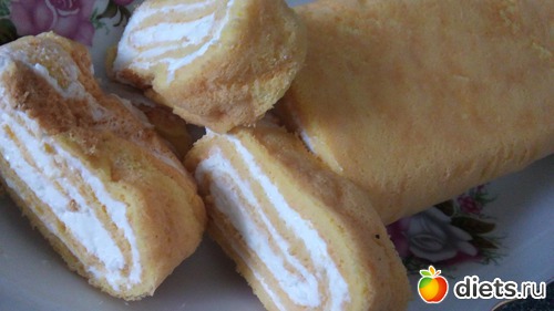 Никогда не могла подумать, что рулет из такого мизерного количества ингредиентов, будет таким бесподобно вкусным))) Будто настоящий - высококалорийный)