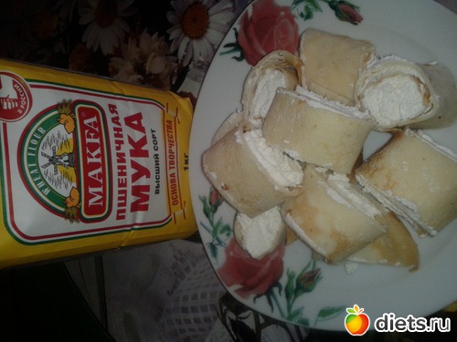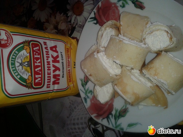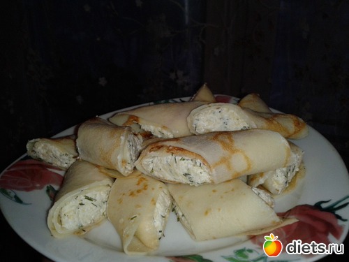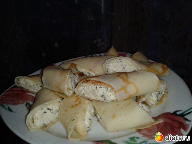 А это блинчики с начинкой из сыра, творога, чеснока и зелени...
