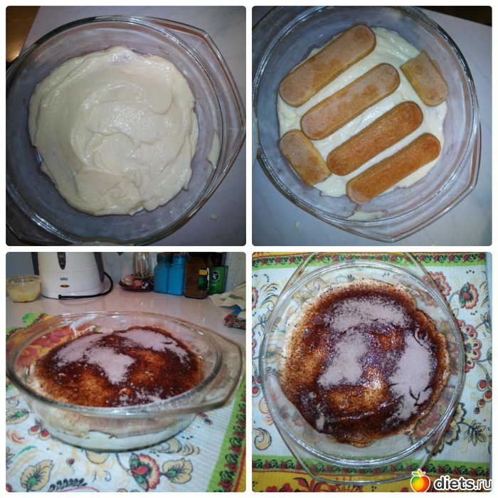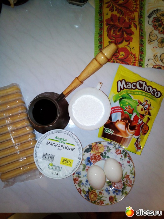 Тирамису, это просто божественный десерт, один раз его приготовила и все влюбилась, он меня покорил. Всегда думала что это очень, очень сложное блюдо, но прочитав несколько рецептов и посмотрев пару видео, оказывается самое сложное правильно взбить белки и желтки, ну и сварить ароматный кофе. Конечно, он ужасно калорийный, но с утра можно Б-5,6, Ж-29, Угли-27,5, Кк348, на 100 гр.