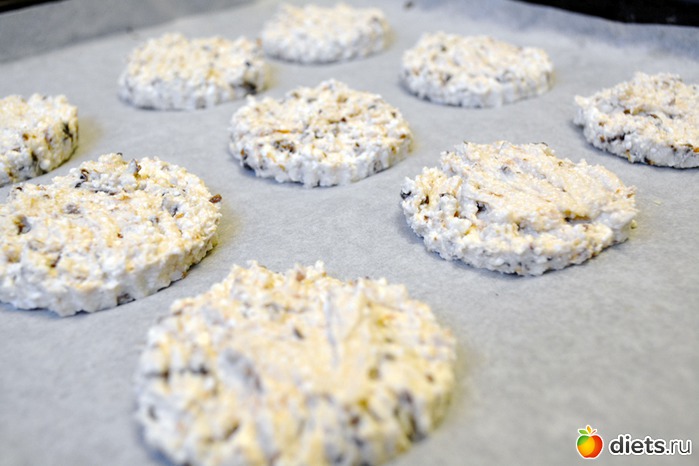 Аккуратно сформировать сырники и выложить на противень. У меня получилось 9 сырников диаметром 6 см и высотой примерно 1,5 см.