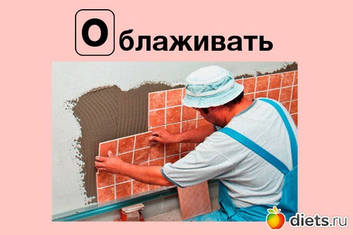 Облаживать Вот плиткой, например, исключительно “облаживают“, и никак иначе. Проверочное слово “лажа”.
