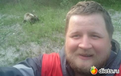 Это мужик из Ноябрьска, сделал селфи в лесу с медвежонком