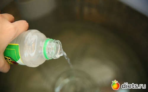 Обычный уксус, а не уксусная эссенция, разведенный водой в соотношении 100-200мл на 50л воды вреда никакого принести не могут