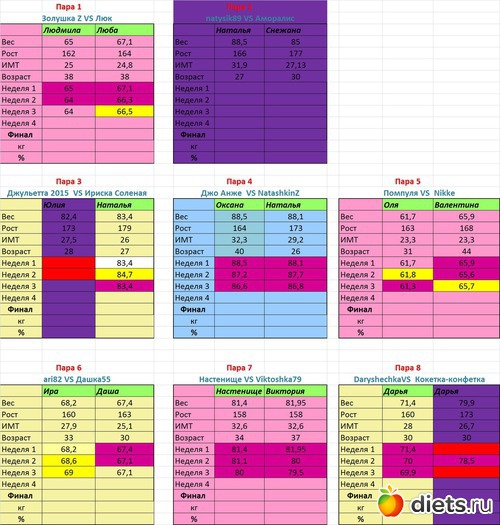 Помпуля, Ириска Солёная, Filippena, SuSSana, savira, urta-ta, Алёна Стройная, Катюнечка, 1222алена, I-P-G – умнички, взяли себя в руки