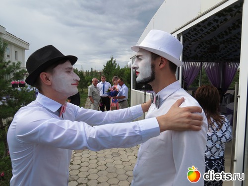 Мимы со свадьбы, встречали гостей. Не понимает трезвый народ таких товарищей, им надо было этот народ не встречать, а провожать! )))