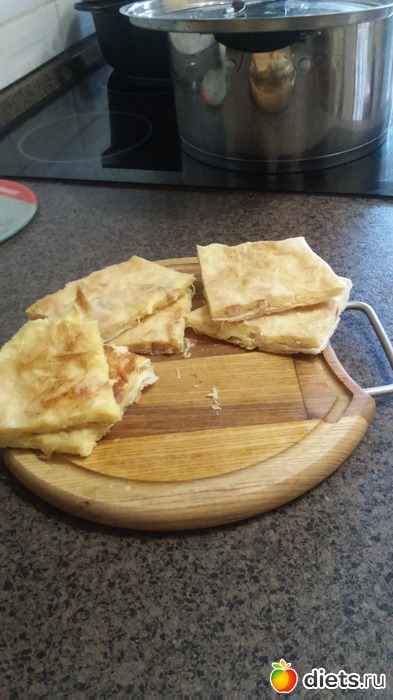 Получилось 2 пирога по размеру сковородки диаметром 26 см. Пирожки стали быстро исчезать, тогда я решила сфотографировать остатки и пожалела. что не запечатлела свои этапы приготовления.